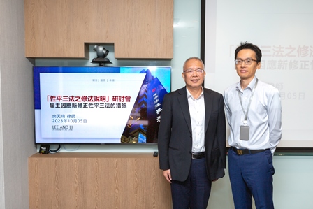 本次研討會將分為「性平三法修法內容介紹」及「雇主因應新修正性平三法的措施」二大主題,分別由本所施穎弘初級合夥律師及余天琦合夥律師擔綱主講。